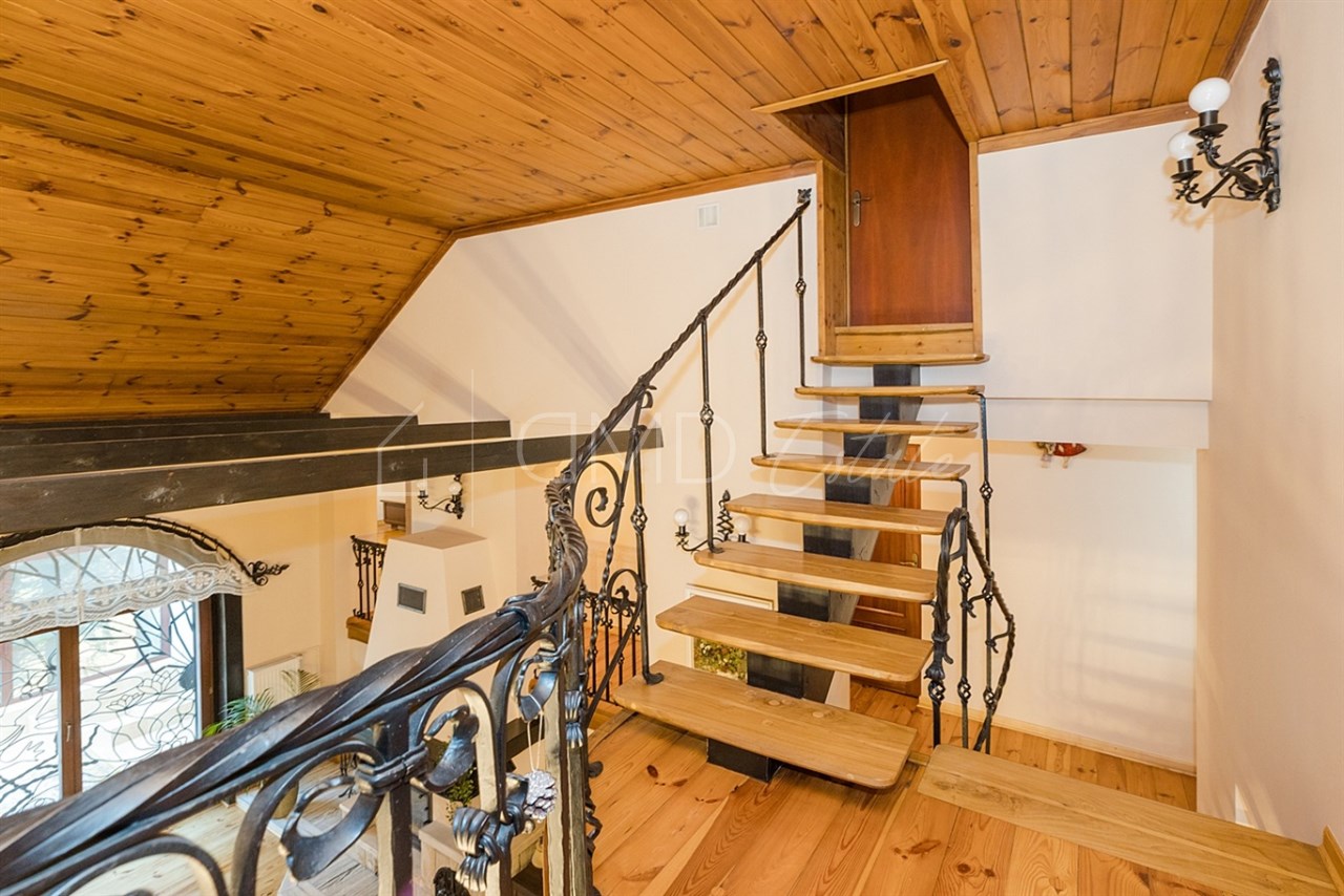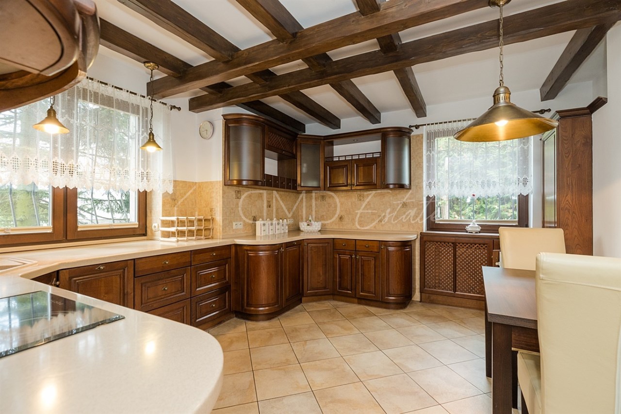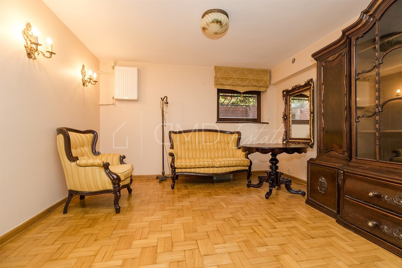 Dodatkowe pomieszczenia: gabinet, dwie spiżarnie, pralnia, garderoby, przestrzeń 50 m² z wyjściem do ogrodu, mogąca pełnić funkcję apartamentu gościnnego.