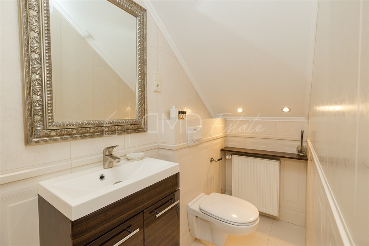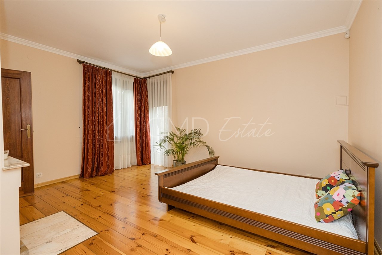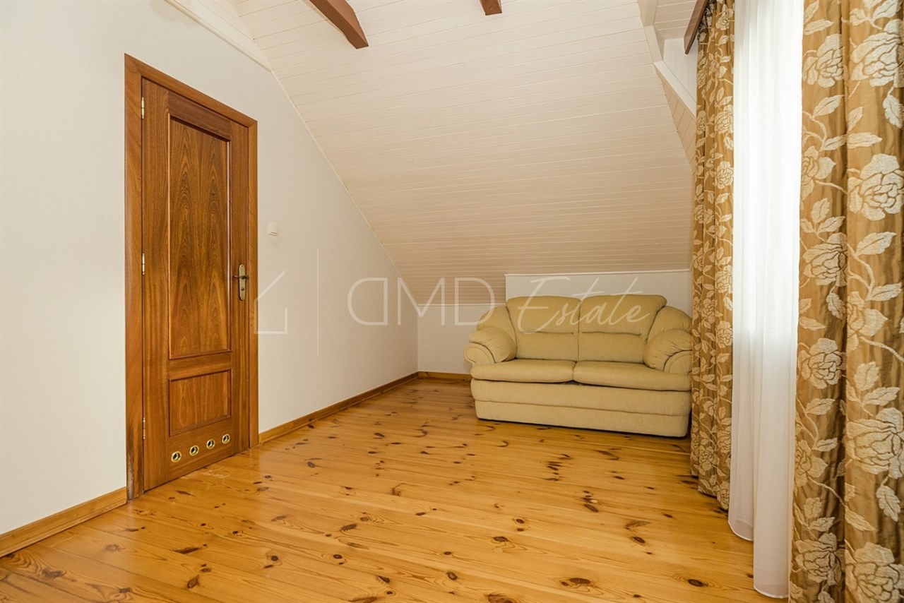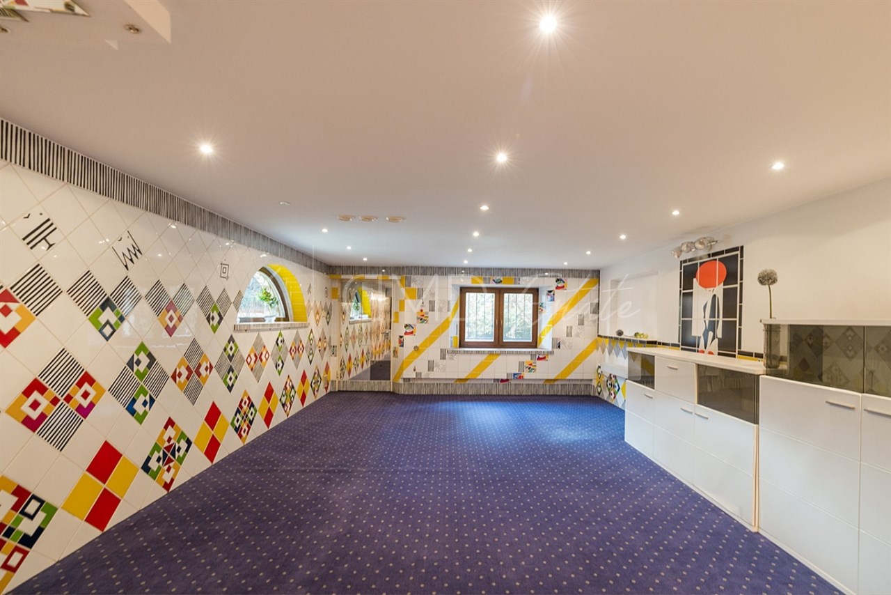 Dodatkowe pomieszczenia: gabinet, dwie spiżarnie, pralnia, garderoby, przestrzeń 50 m² z wyjściem do ogrodu, mogąca pełnić funkcję apartamentu gościnnego.