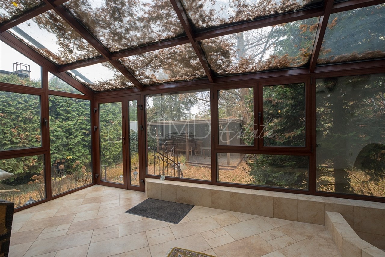 Słoneczny ogród z klimatyzowanym ogrodem zimowym oraz altaną.