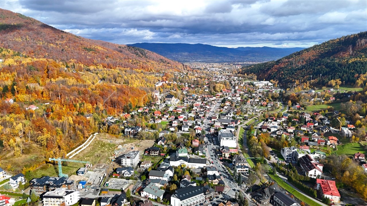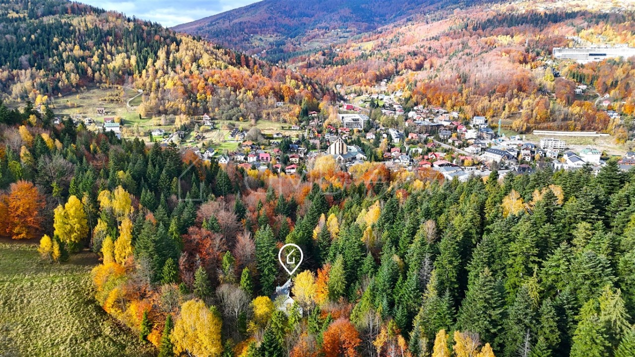 Całość obejmuje działki o łącznej powierzchni 2117 m² wraz z wolnostojącym domem mieszkalnym z lat 50. oraz budynkiem gospodarczym. Nieruchomość znajduje się w wyjątkowej lokalizacji – zaledwie 600 metrów od Urzędu Miasta Szczyrk, a jednocześnie w spokojnej, zielonej i kameralnej części miejscowości.
