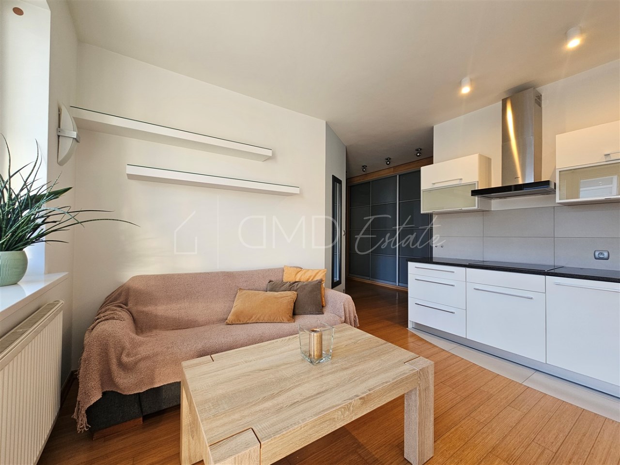 - pokój dzienny ( wyjście na balkon), wraz z aneksem kuchennym z zabudową kuchenną z AGD - płytą grzewczą, okapem, zmywarką, nową lodówką podblatową,