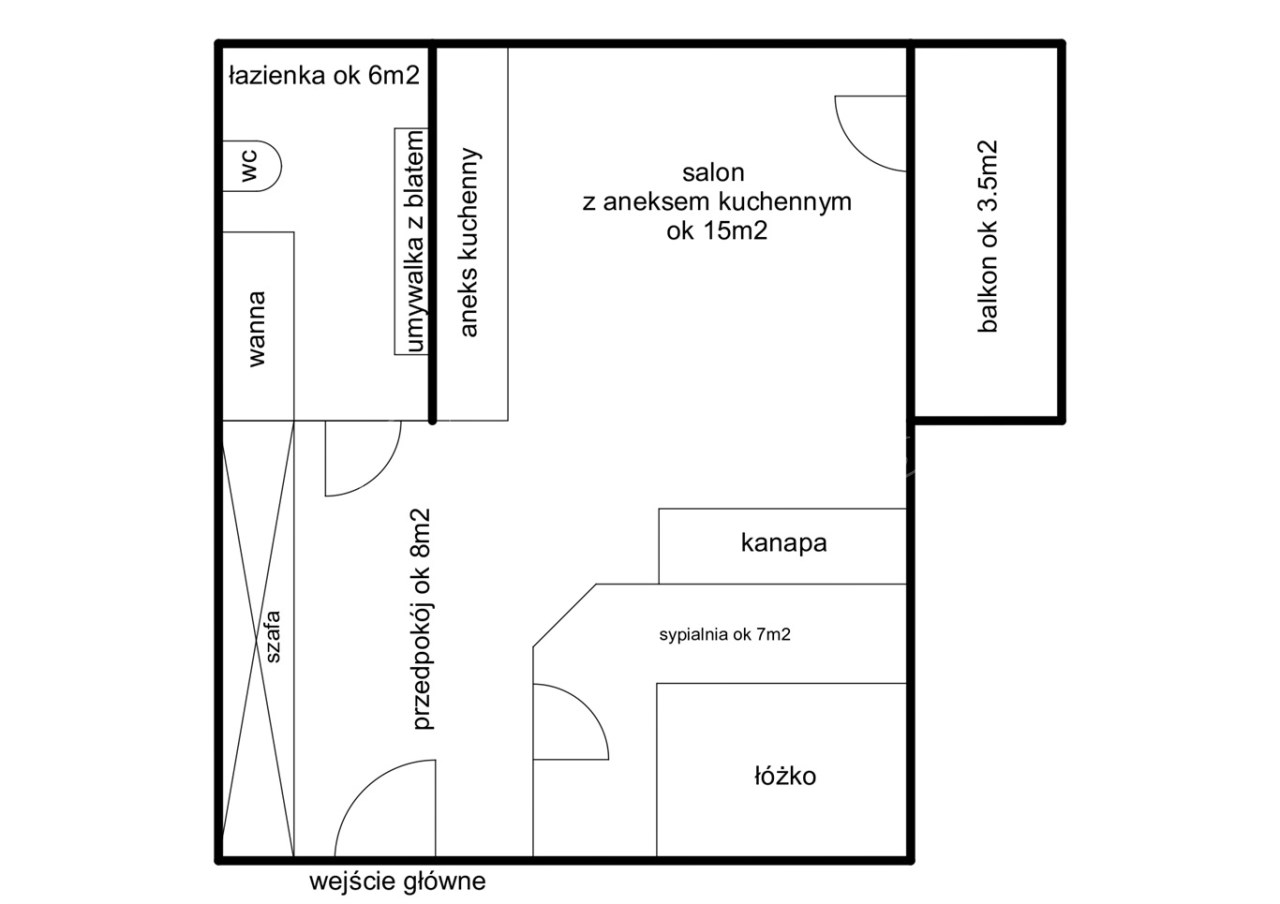 - przedpokój ok 6,5. m2, z dużą szafą.