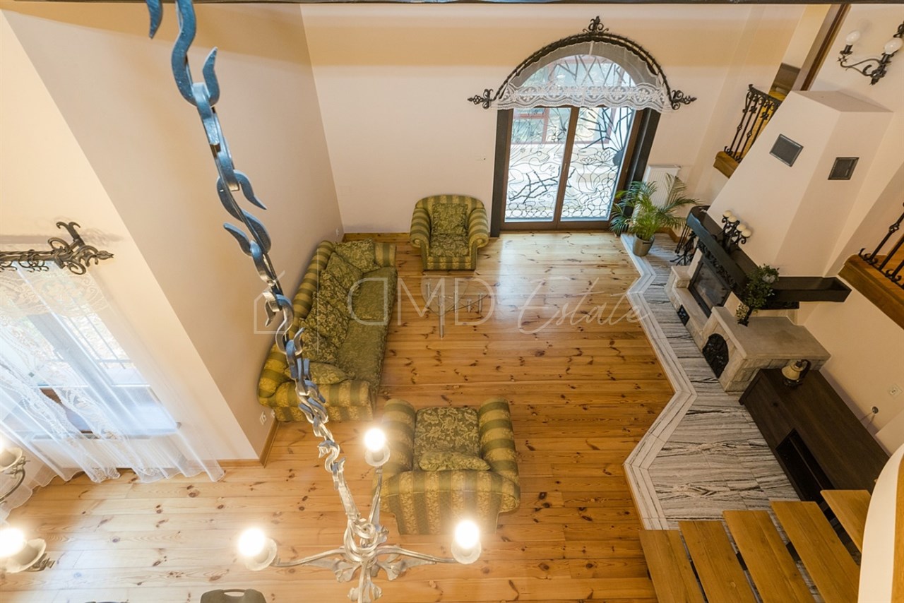 Dodatkowe pomieszczenia: gabinet, dwie spiżarnie, pralnia, garderoby, przestrzeń 50 m² z wyjściem do ogrodu, mogąca pełnić funkcję apartamentu gościnnego.