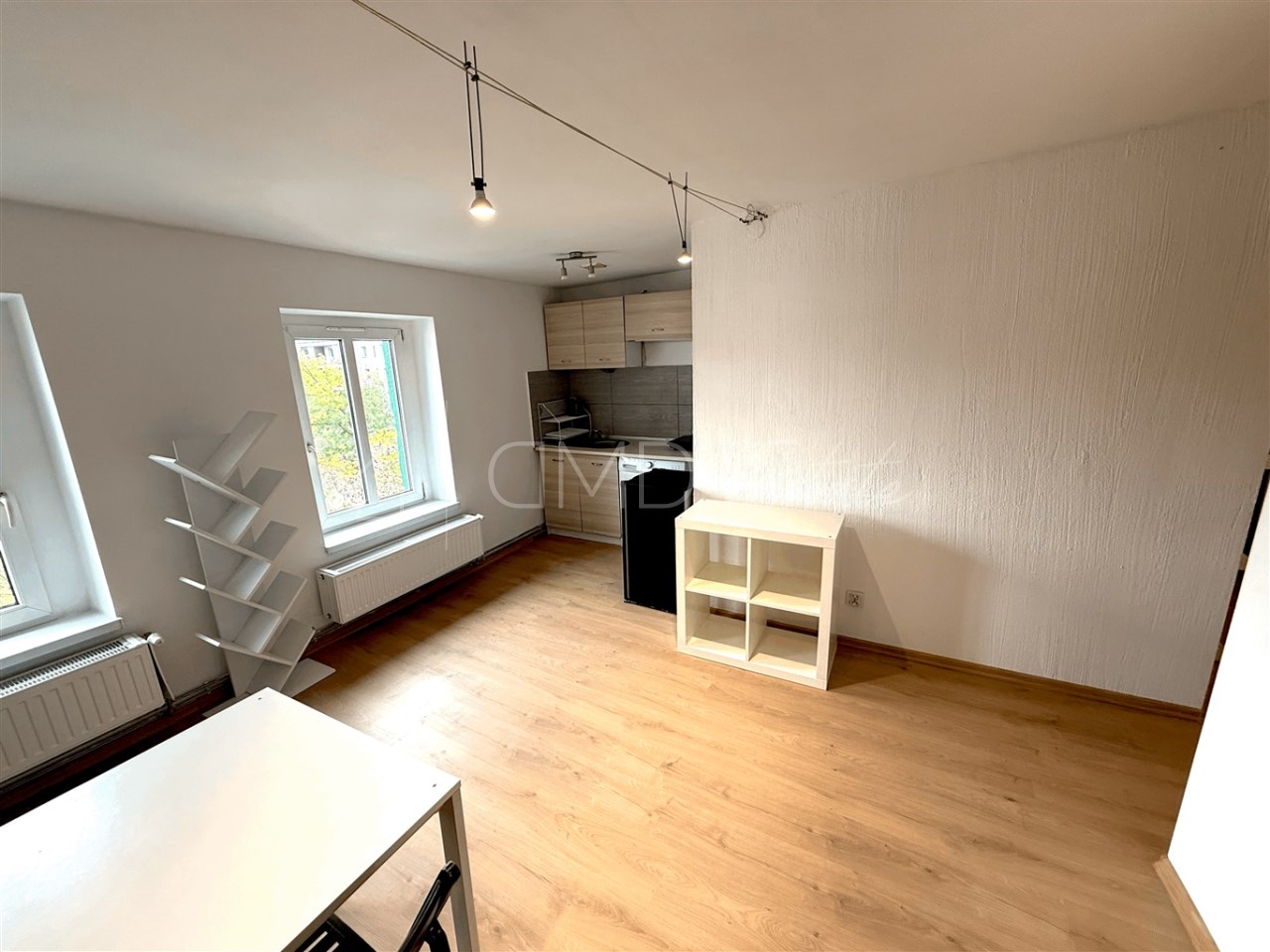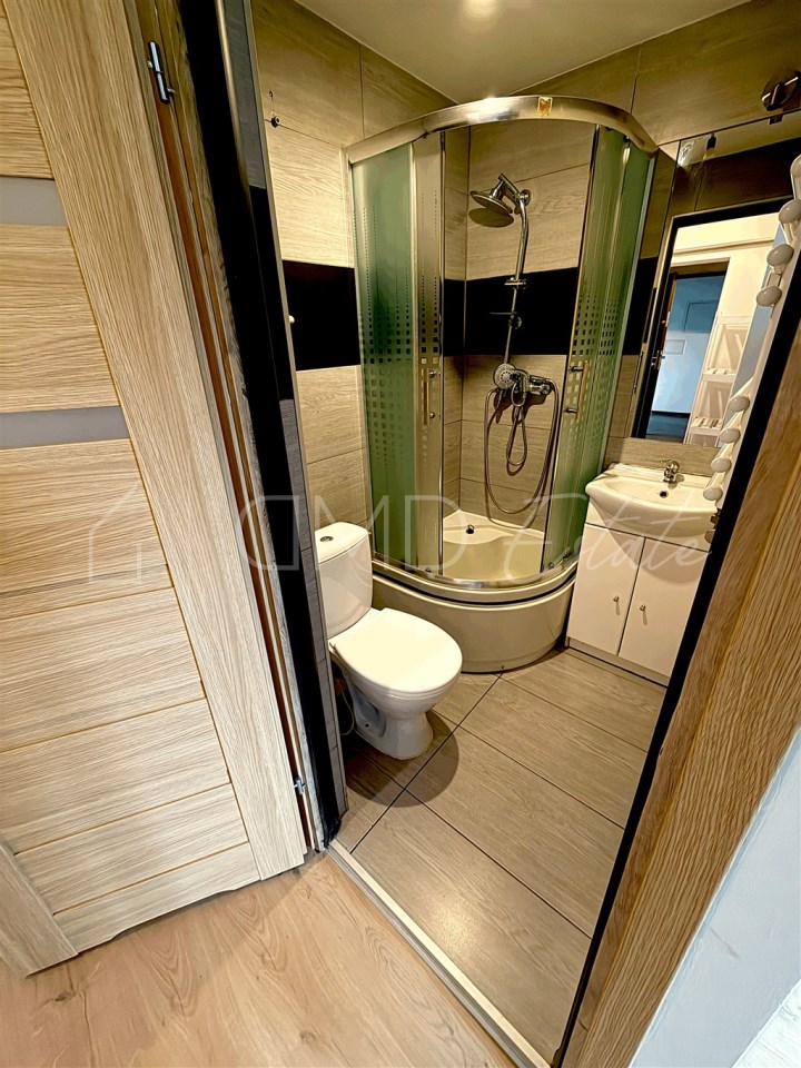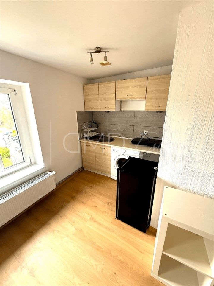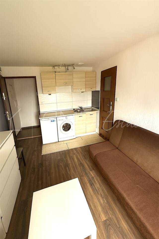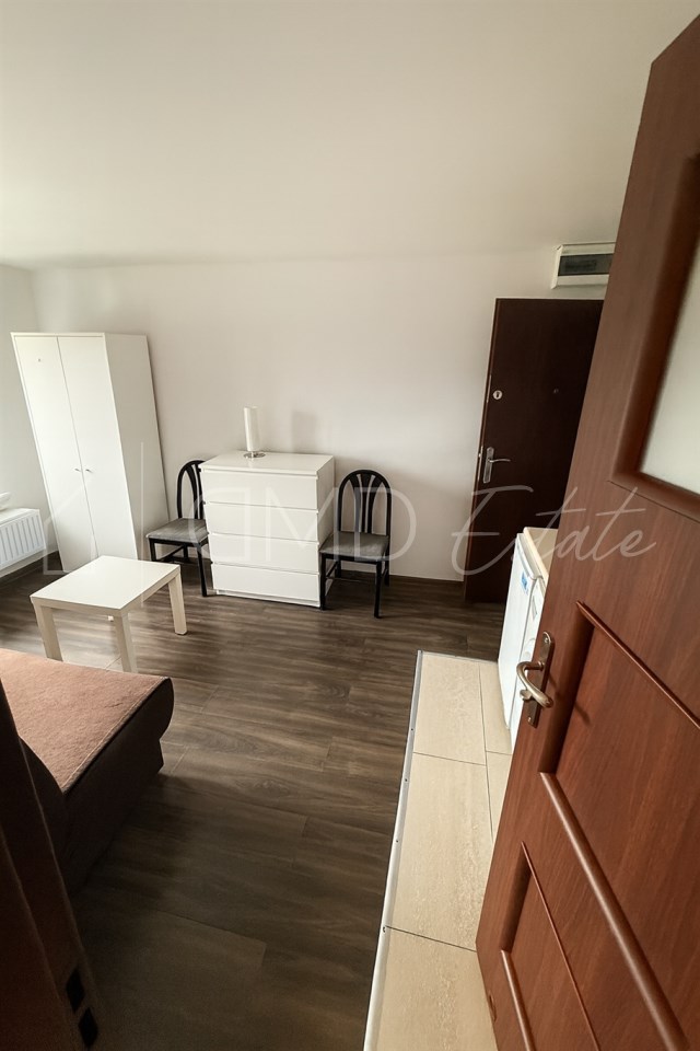 – Większa: ok. 26 m2 (pokój z aneksem kuchennym we wnęce + łazienka)